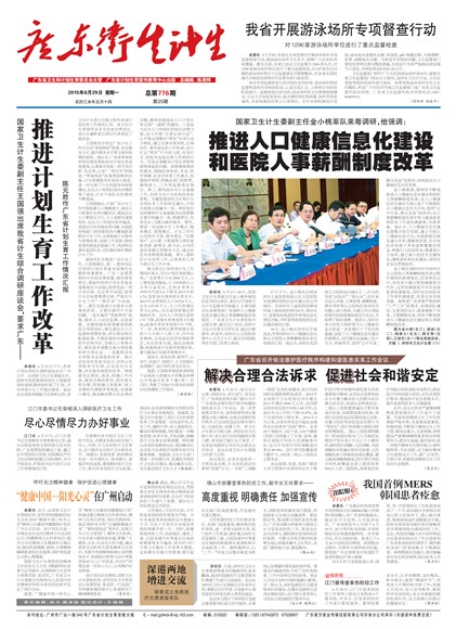 广东卫生健康要闻 把牢思想和行动“总开关” 中国计生协会党组书记杨玉学来粤调研 0~3岁婴幼儿身心健康发展培训班 “我健康·我快乐”活力四射 做好民生实事卫生计生“五项”工作 整合服务 双管齐下 统筹推进 主题:弘扬婚育新风 关爱弱势群体 抓好七项重点 落实党廉责任 重要启示 保持高压态势打击非法代孕 潮州市副市长余鸿纯督导登革热防控工作 我省首个计生药具服务管理规范出台 副省长温国辉到省卫生计生委调研