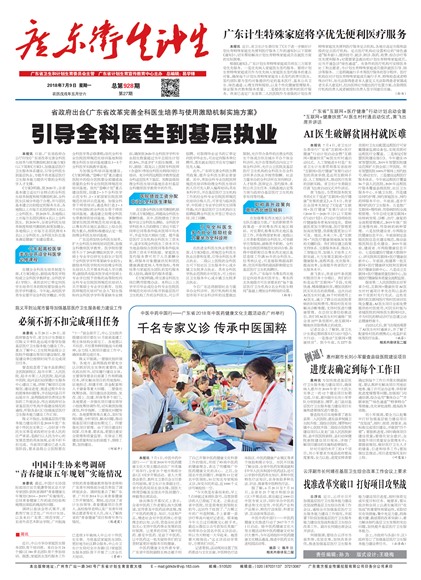 广东卫生健康要闻 广东“八措施”巩固破除以药补医成果 展示党员干部时代风采 共同实现人口与经济社会协调可持续发展 按时间节点完成项目建设任务 持续推动我省卫生应急走在全国前列 加强生育全程基本医疗保健服务 广东订单定向免费培养千名医学生 全省1366间游泳场所近九成水质合格 佛山市卫生计生局和中国移动签署信息化战略合作框架协议