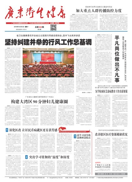 广东卫生健康要闻 主动服务大局 扎实推进机构改革 广东深化医改典型经验再向全国推广 以精神文明建设推动卫生健康事业发展 广东首个全国电子健康码在深圳诞生 广东儿童青少年近视率逾50% 为计生家庭提供多元保险服务 韶关公立医疗机构取消医用耗材加成 新组建的广东省卫生健康宣传教育中心成立