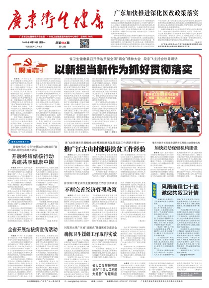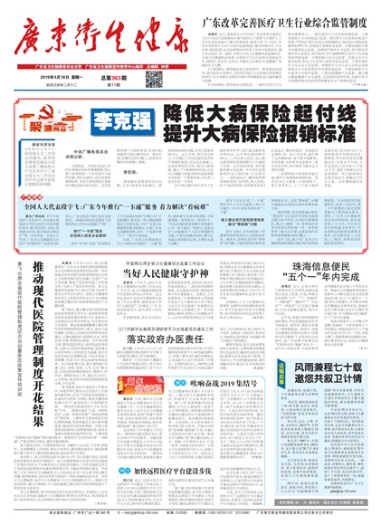 广东卫生健康要闻 进一步提高全社会癌症防控意识 携手塑造健康湾区 深化粤澳交流合作 “五大实招”助推湾区卫生健康发展 掌上晒进度 争先补短板 缴费免排队 开票“指尖”完成 进一步拓宽合作交流渠道 云浮市领导调研医疗卫生工作 我省年底70%县级医院医疗服务能力达基本标准 “三个着力”谱写新篇章