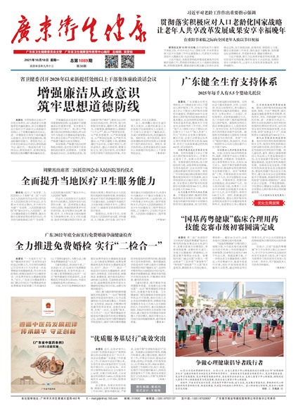 广东卫生健康新闻 毫不放松落细落实常态化疫情防控各项措施 广东“学三明”推动深化医改 我省推进婚前孕前保健工作 粤部署紧密型县域医共体建设 全面清理与三孩政策不相适应的文件规定 省委第十三巡视组巡视省卫生健康委党组工作动员会召开 保障居民常用药物“不断粮” 简讯 省卫健委征集“十四五” 医疗卫生服务体系规划意见建议
