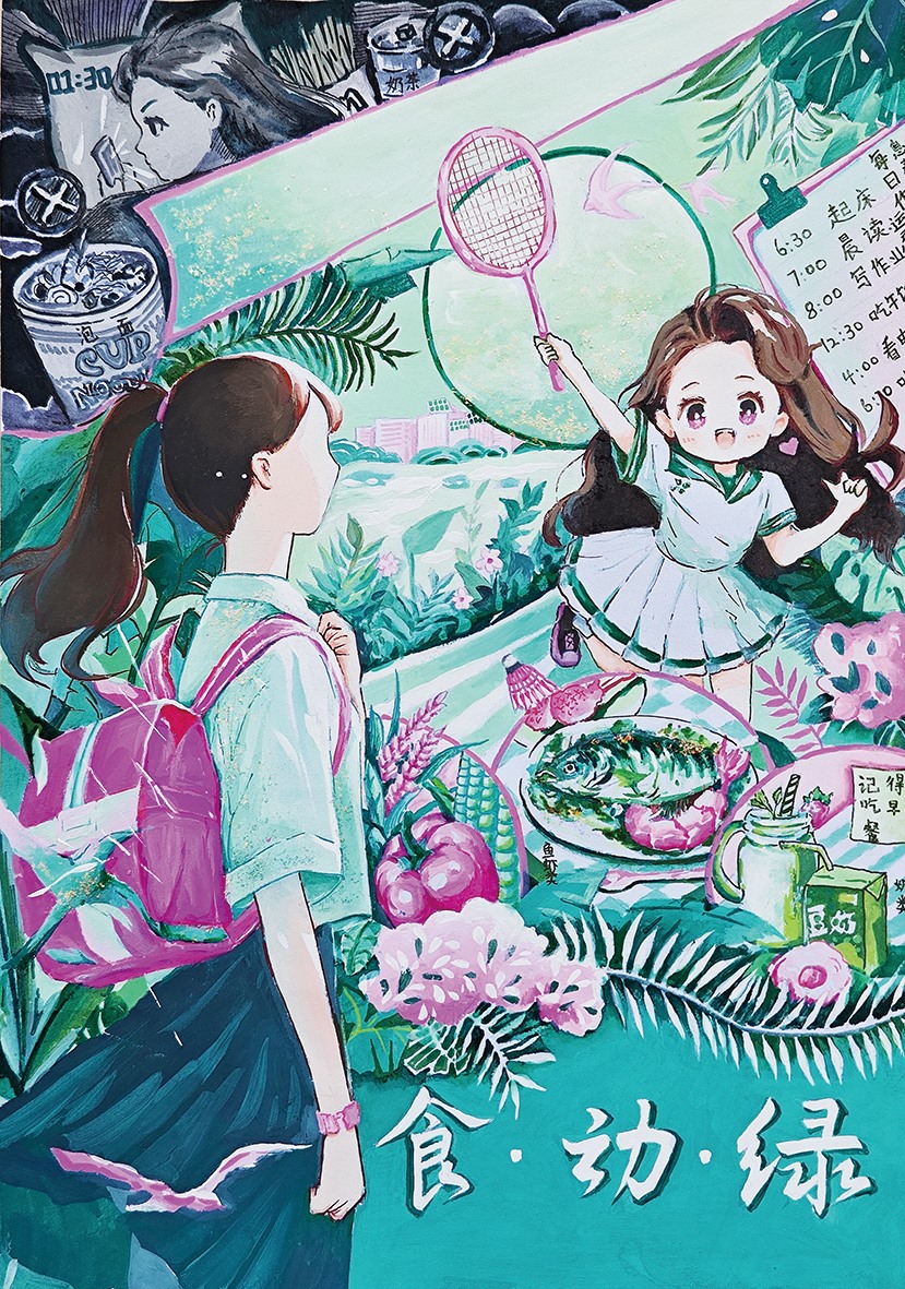 ▲作品名称:《食·动·绿》 作者: 郭乐儿 作者单位:普宁市流沙南街道里宅小学