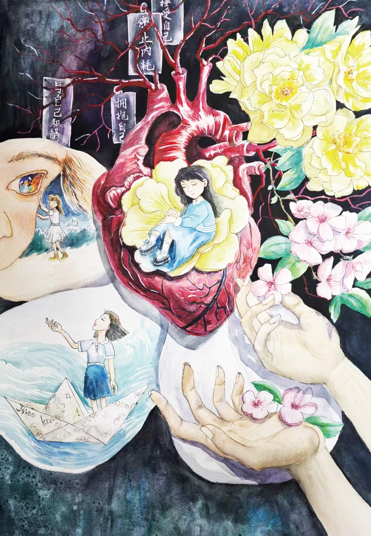 ▲作品名称:《心屿·自渡》作者:林俊城 作者单位:榕城区登岗镇吕畔初级中学