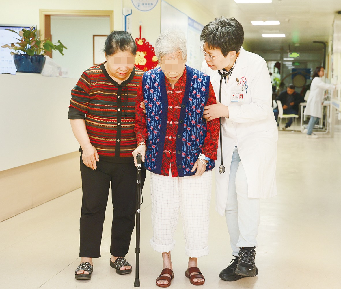 马育霞认为,医术只是基础,仁爱才是老年医学的灵魂。针对老年患者特殊需求,她推行“每日三必问、关键三必到”人文关怀制度——每日询问睡眠质量、饮食摄入、情绪波动,在病情危急时、亲人缺席时、传统节庆时必到身边。面对多脏器衰竭患者,曾牵头定制“临终心愿清单”,通过制作家庭影像集、帮患者实现未了心愿,开展温暖的安宁疗护。曾有家属动情地说:“父亲带着尊严安详离世。”还曾有一位103岁多脏器功能衰竭的老人,经马育霞团队多学科讨论、精准制定治疗方案后转危为安,出院当天家属专程到门诊向她鞠躬致谢。