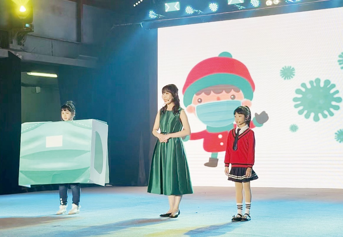 ▲家庭创新电视大赛上,我和妈妈一起展示“新型潮湿变色口罩”