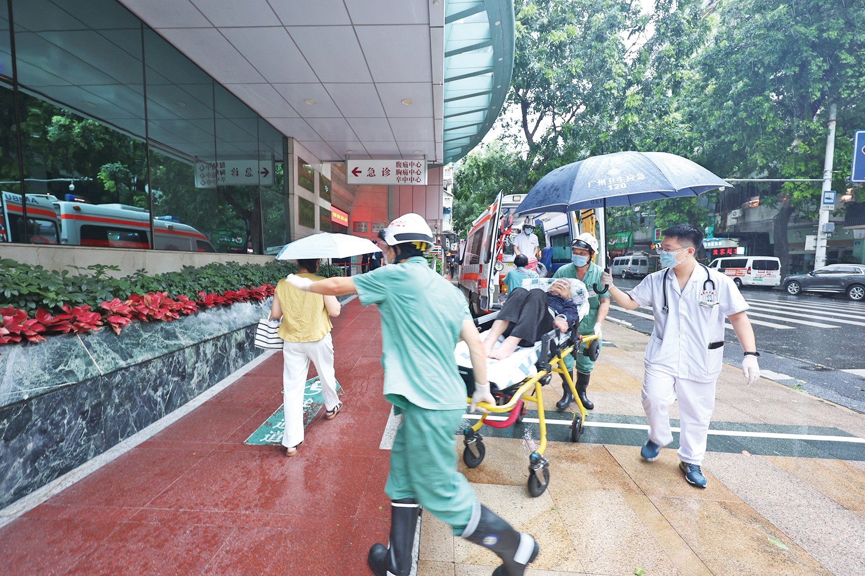 台风登陆当日清晨,狂风暴雨席卷羊城,省中医院各科主任、护士长全部到岗值守。急诊、病房、手术室、血透室、后勤等科室有条不紊,各项诊疗工作有序进行,为患者提供正常诊疗服务。