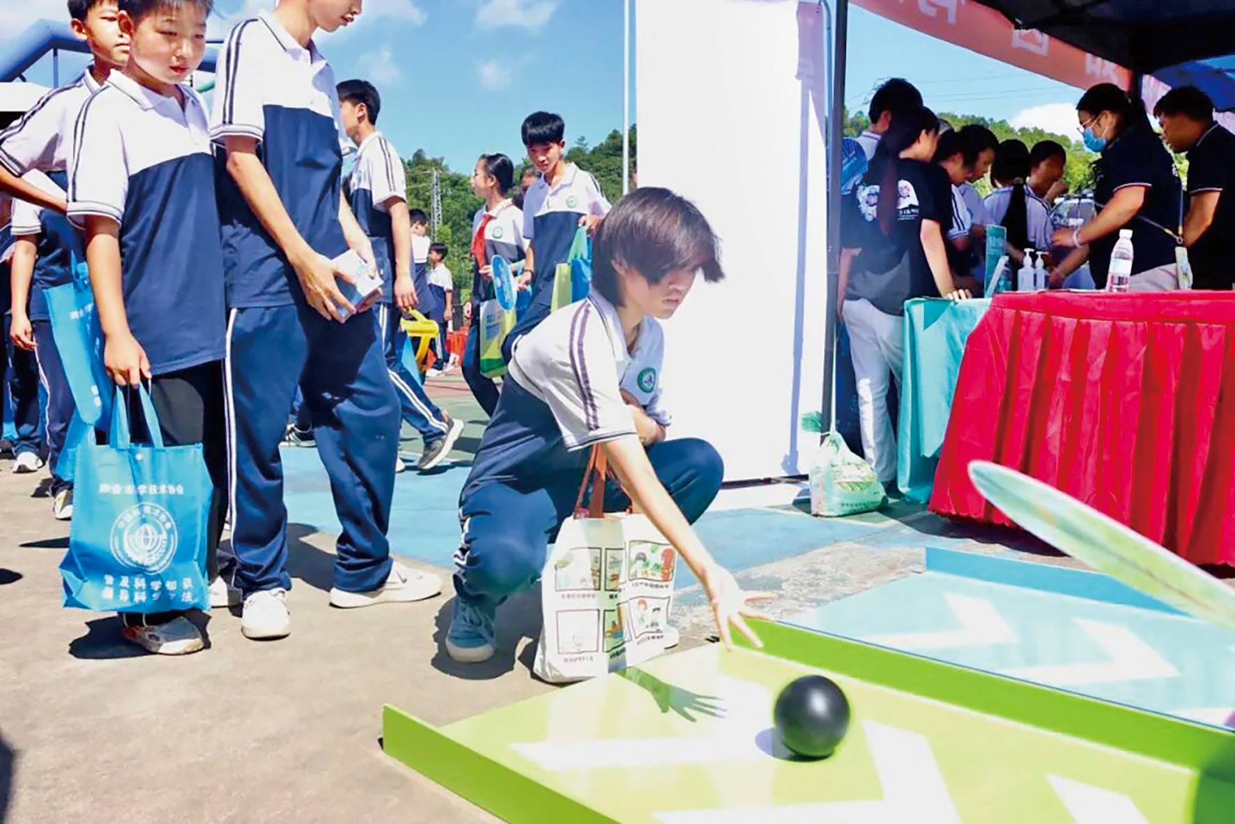 为让健康科普更具趣味性和吸引力,市卫生健康局在活动现场为居民量身打造“追球健康”挑战赛,巧妙地将“运动控重”健康科普与游戏互动相结合。“玩着游戏还能学健康知识,真有意思!”就读于四会市石狗学校的陈同学全程沉浸在活动中,无论是科普摊位的新奇展示,还是“追球健康”挑战赛的趣味互动,都让他玩得不亦乐乎,“刚才玩投球游戏的时候,志愿者姐姐告诉我多运动能帮助控制体重,还教了我怎么合理安排运动时间,我回家也要把这些知识告诉爸爸妈妈,和他们一起养成健康的生活习惯。”