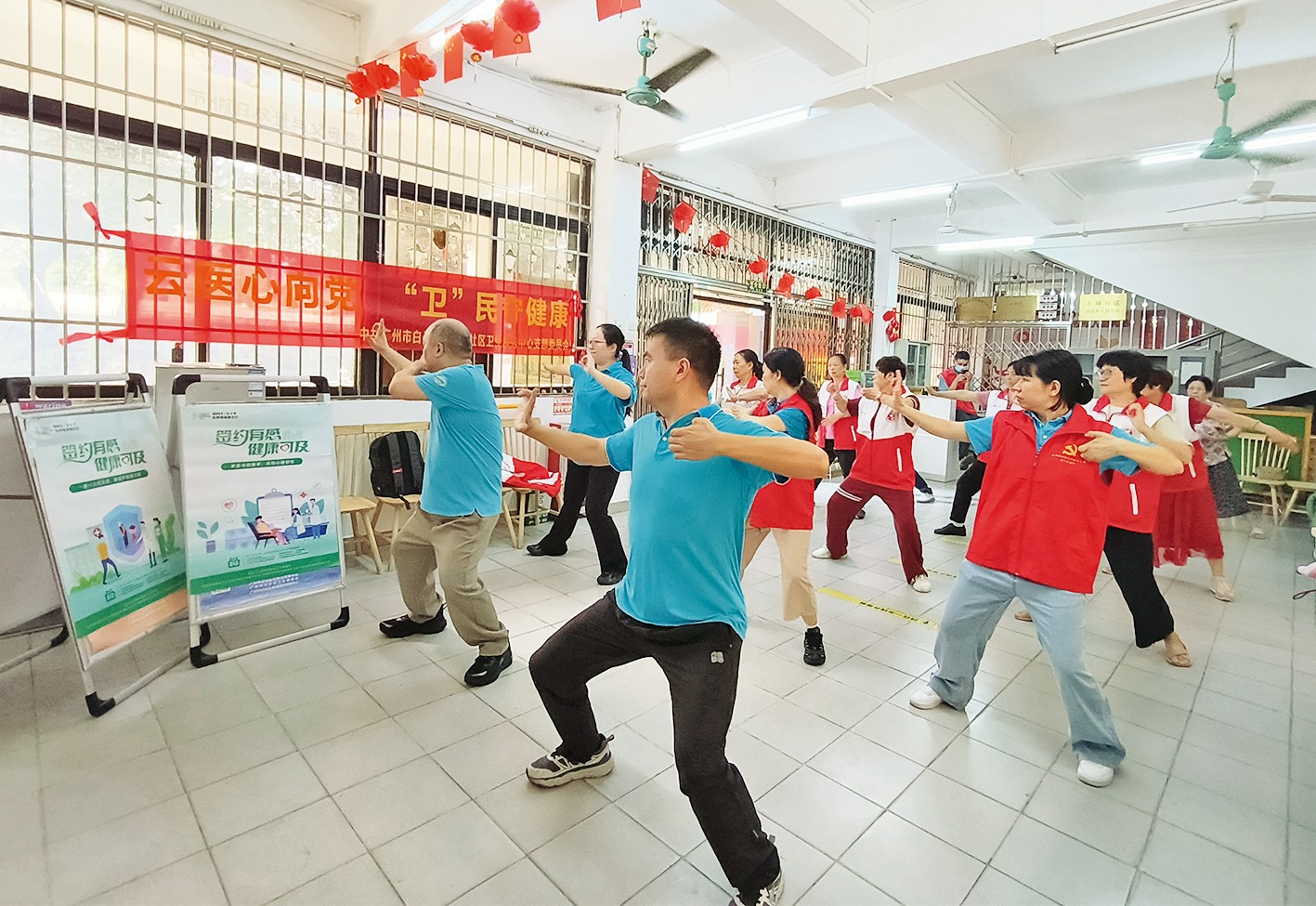 ▲医生带领居民练习八段锦
