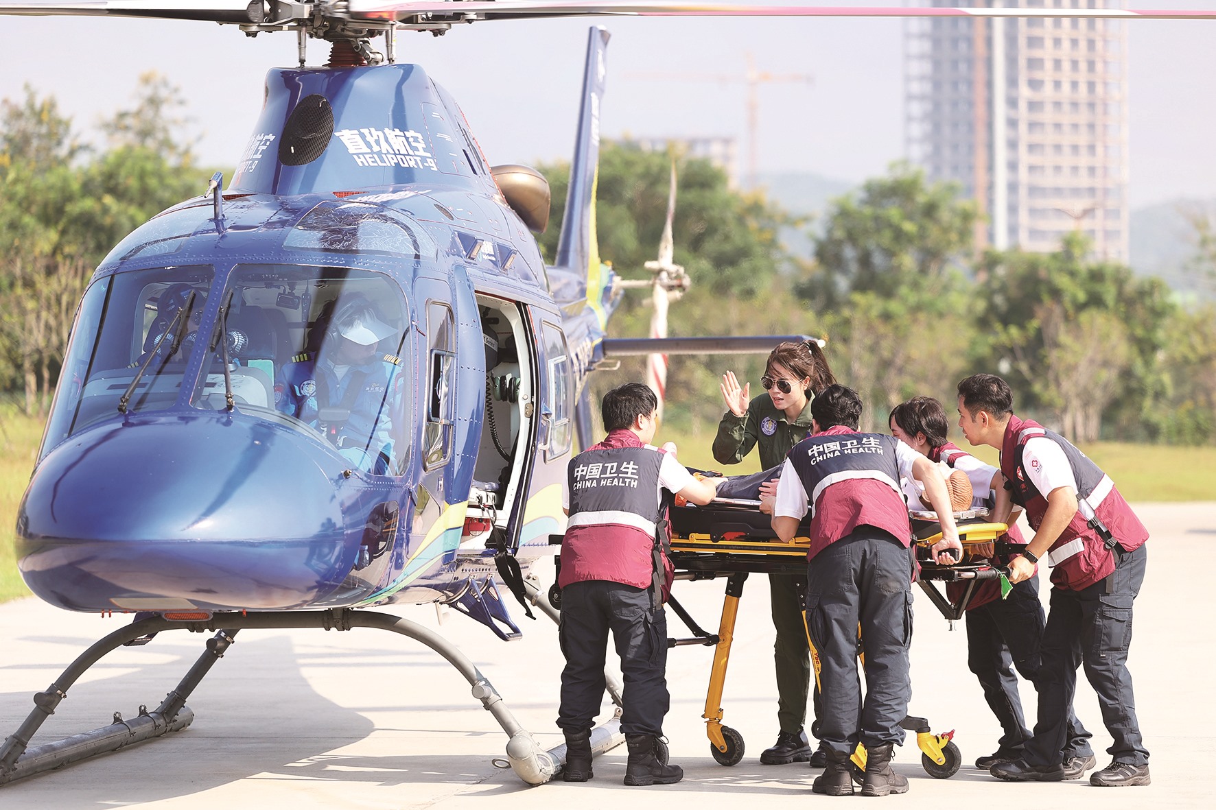 ▲直升机转运重伤员