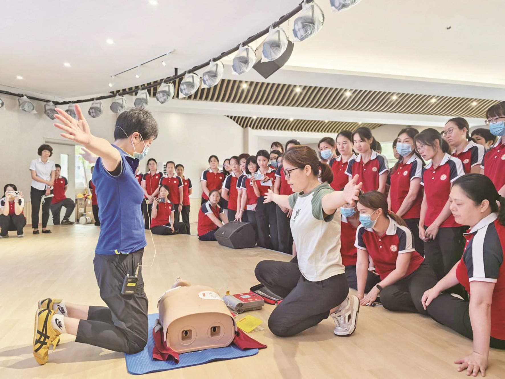 “当时脑子里就一个念头,按培训的流程来!”李娜回忆道。得益于当天上午刚刚接受的强化训练,她对每一个步骤都记忆犹新。从评估环境、判断意识到立即启动应急反应系统,再到实施高质量的徒手心肺复苏——按压部位、深度、频率,每一个细节都力求精准。紧接着,她与赶来的同事默契配合,迅速取来校内配备的AED。从开启设备、粘贴电极片到遵照语音提示完成一次电击除颤,整个操作流程沉着冷静,一气呵成。