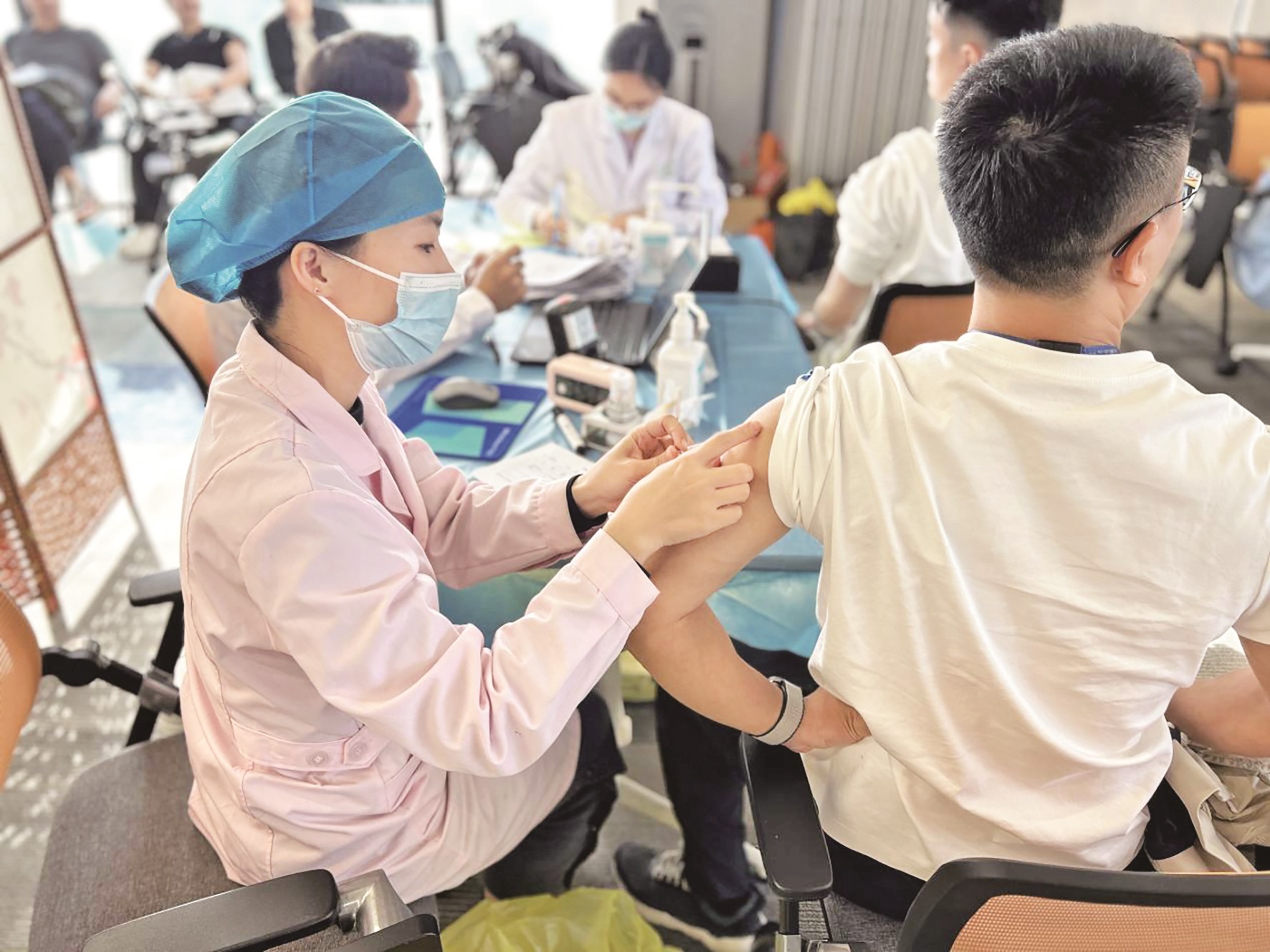 广州讯 当前正值流感高发季,互联网企业员工日常工作节奏快、项目迭代迅速,往往因忙于工作而忽略流感疫苗接种,给健康防护留下隐患。日前,在广州市海珠区卫生健康局的组织下,琶洲社区卫生服务站的医护人员组成“移动预防接种队”,走进琶洲某重点互联网企业,为企业305名员工提供上门流感疫苗接种服务。